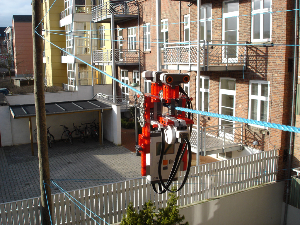 My backyard was filled with clotheslines, so I decided to create an aerial ropeway that could measure the length of a rope. The ropeway has two ultra-sonic sensors – one for each direction. This allows the ropeway to stop before it hits an object. The ropway is controlled from a PC with the Bluetooth aerial ropeway remote. Below you will find a description of the remote as well as building instructions for building your very own aerial ropeway.